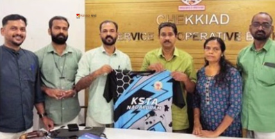 കെ.എസ്.ടി.എ നാദാപുരം ടീമിനായി ചെക്യാട് സർവീസ് സഹകരണ ബാങ്ക് ജേഴ്സി കൈമാറി