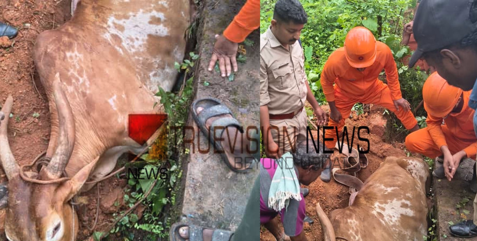 'മനഃസാക്ഷി മരവിക്കാതെ'; കാനയിൽ അകപ്പെട്ട കാളയെ രക്ഷപ്പെടുത്തി നാദാപുരത്തെ ഫയർ & റെസ്ക്യൂ