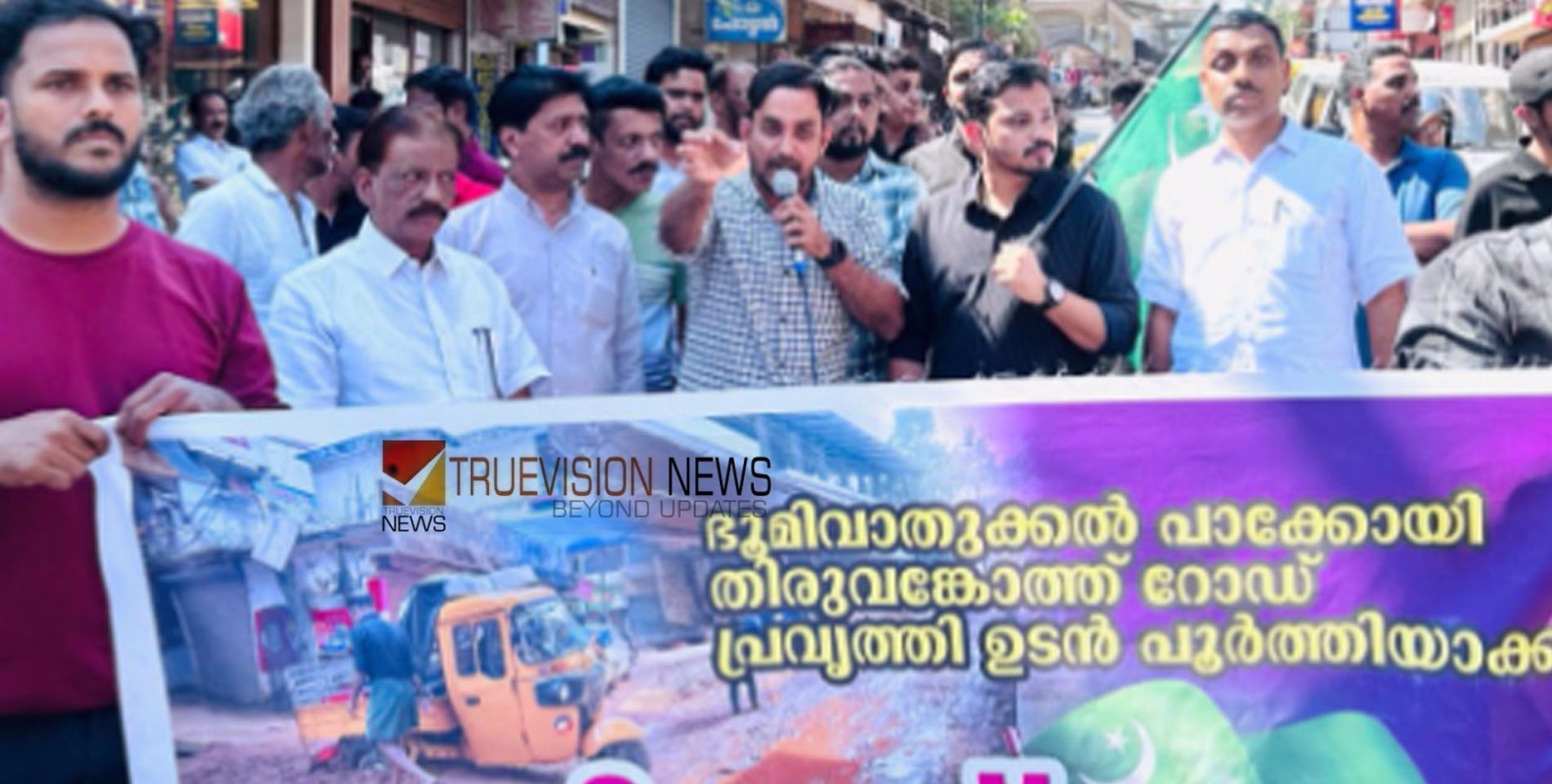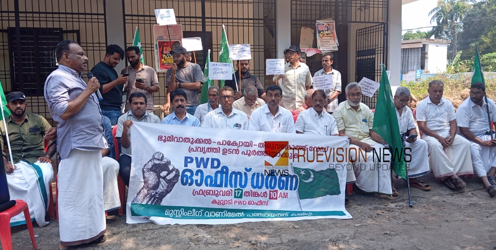 സമരം തുടങ്ങി; പാക്കോയി റോഡിന്റെ ശോചനീയാവസ്ഥയ്ക്കെതിരെ ധർണ്ണ സംഘടിപ്പിച്ച് മുസ്ലിം ലീഗ്